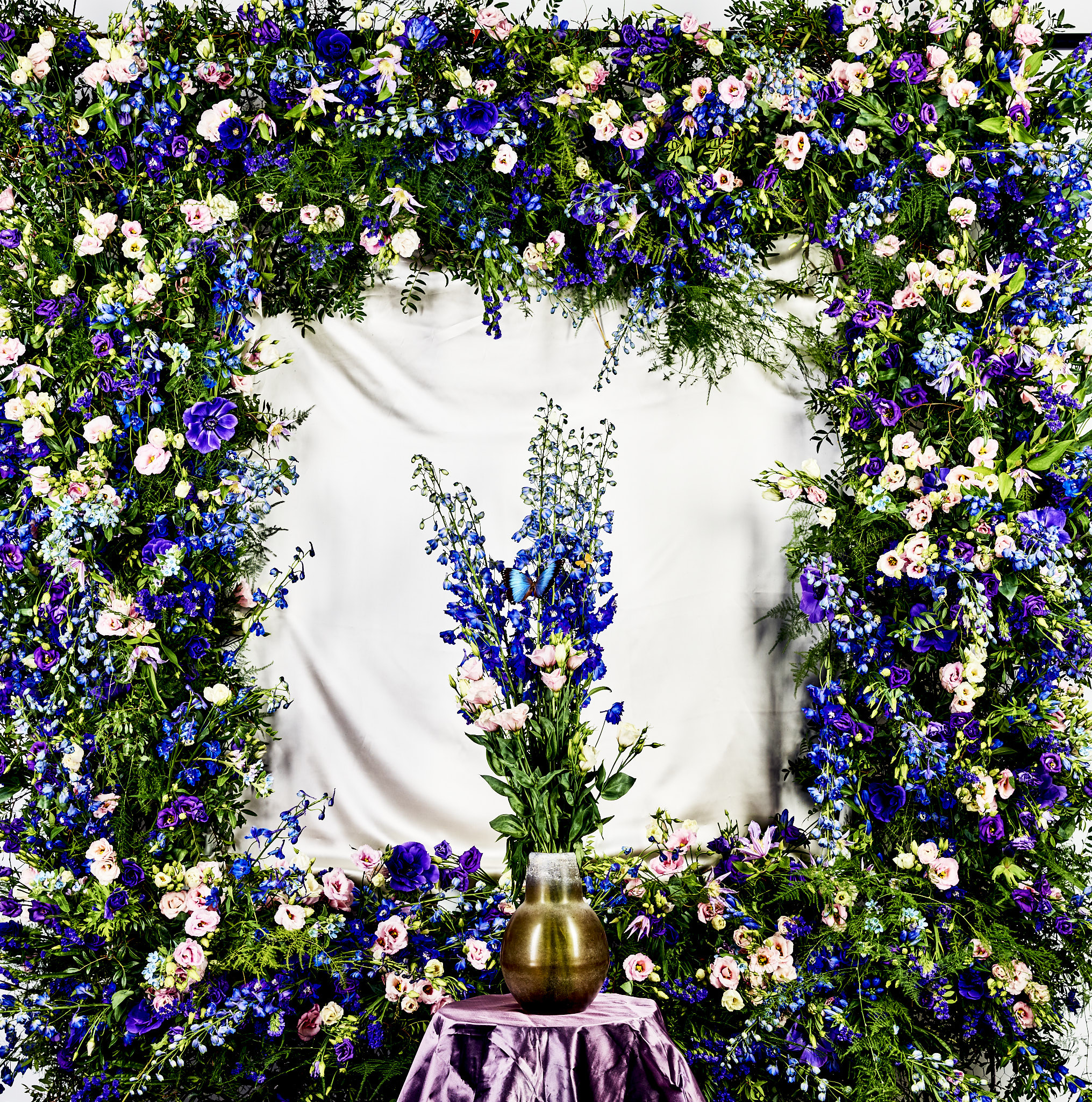 To bring their vision to life, we designed and constructed a magnificent flower wall on an impressive scale. Each delicate flower was carefully selected to create a harmonious composition that exudes grace and sophistication. The enchanting display was accompanied with butterflies and shining stones.