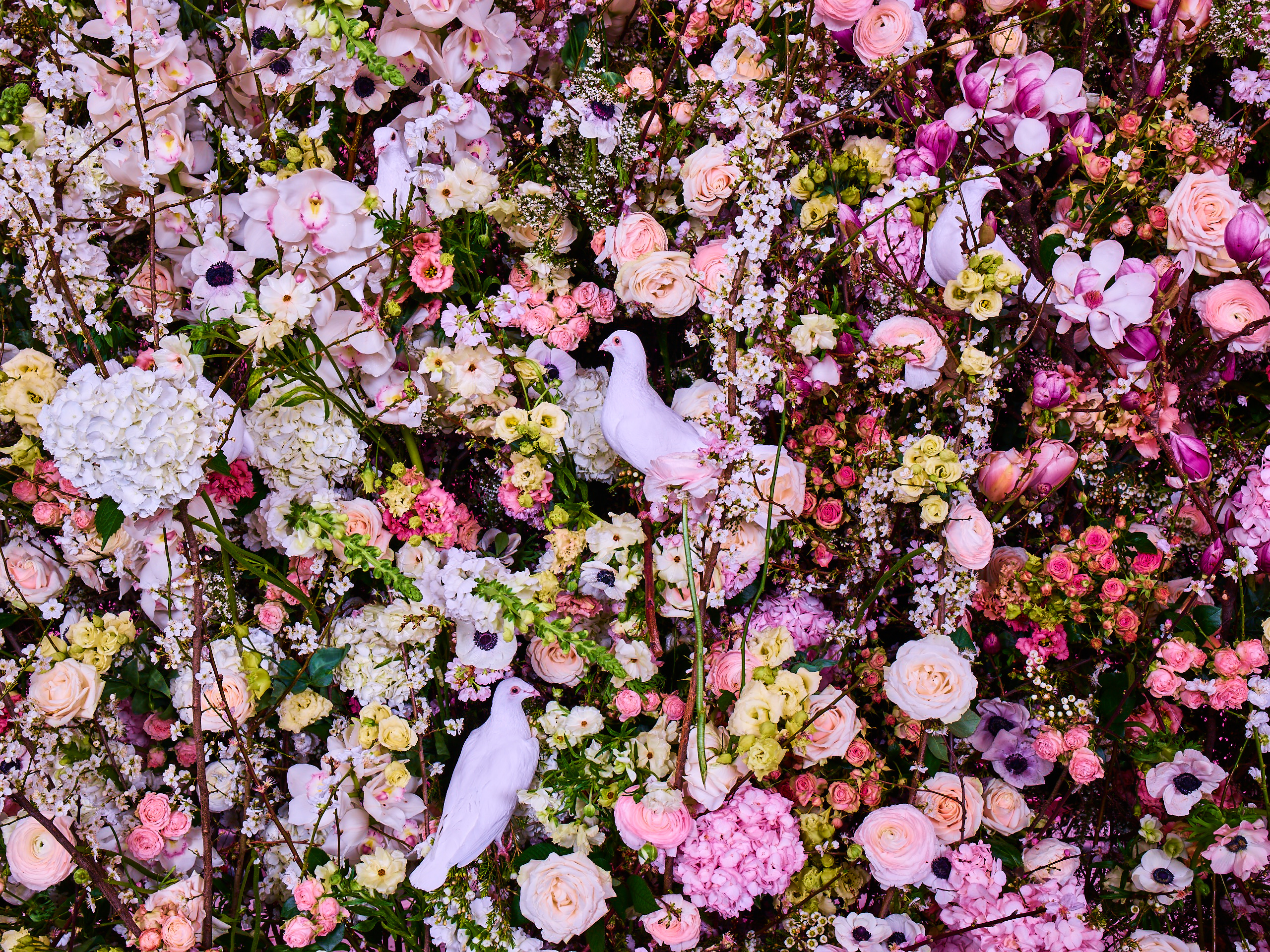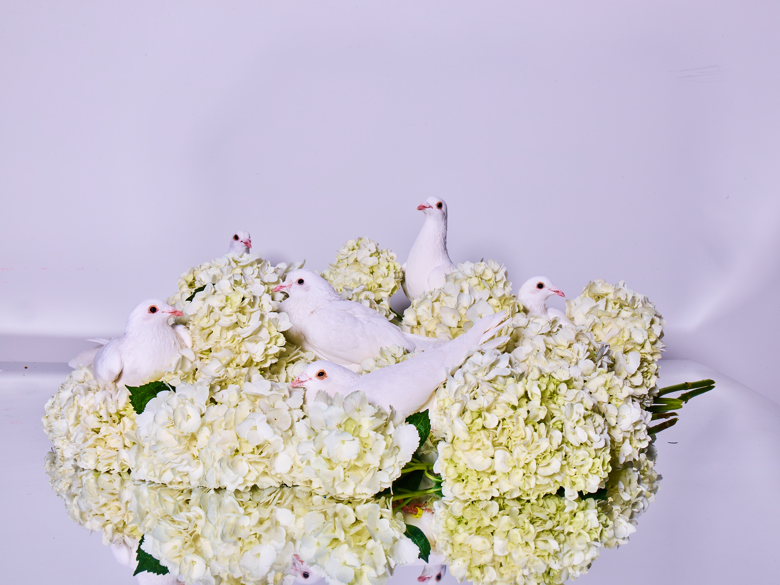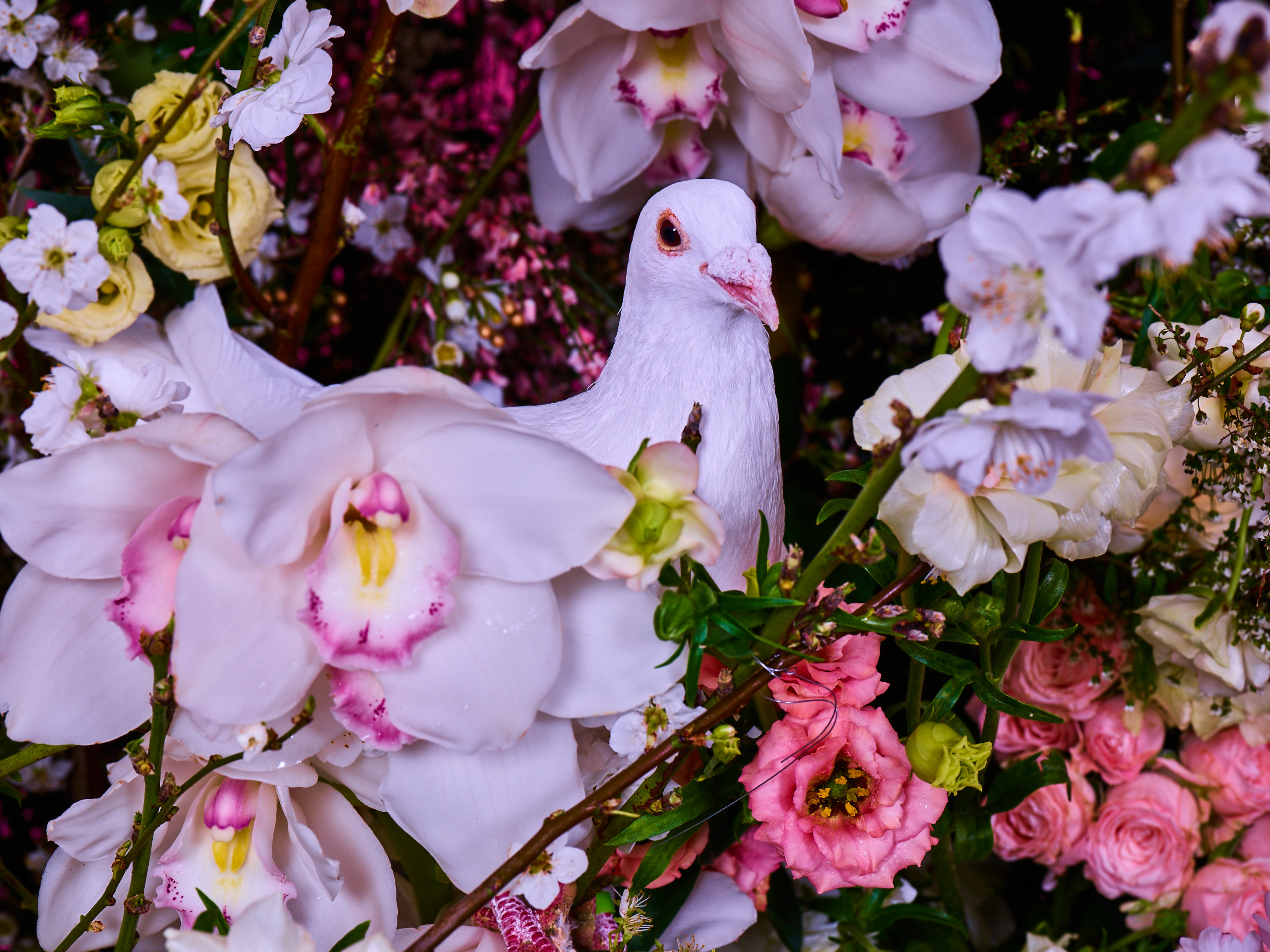 To add an extra touch of enchantment, we decided to incorporate elegant white doves amidst the blossoms. These graceful creatures nestled gracefully among the flowers, their ethereal presence enhancing the overall atmosphere of tranquility and beauty.